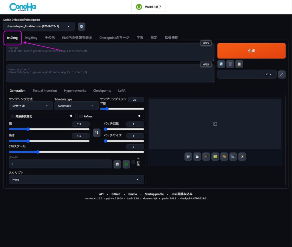 最初の1枚を生成してみよう!