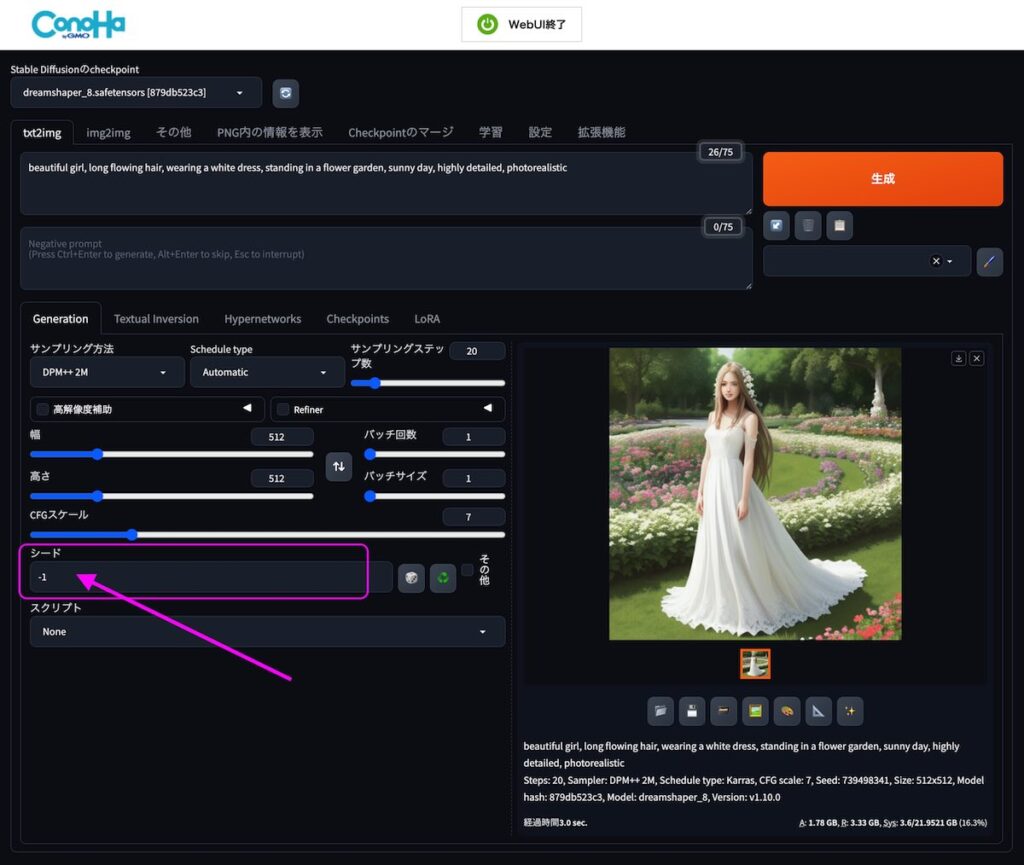 通常はね、シード値は「-1」(これは「毎回ランダムなシード値を使って、新しい絵を描いてね」って意味だよ)のままで大丈夫。そうすれば、毎回どんな絵に出会えるかワクワクしながら楽しめるから!
