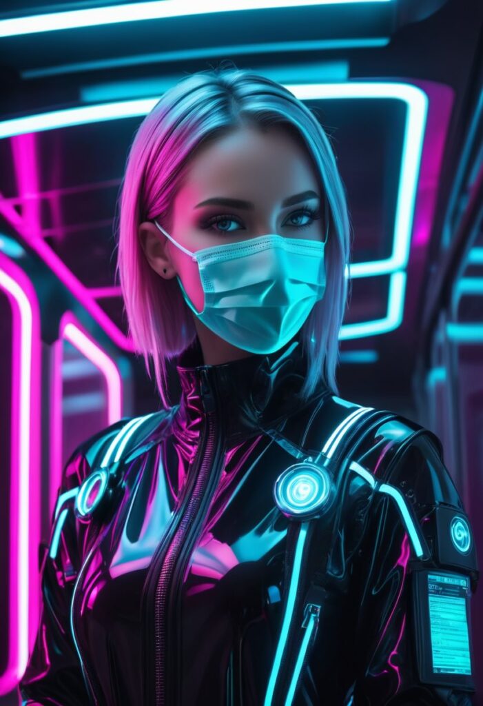 | 主題・スタイル | A hyper-realistic portrait of a young female cybernetic doctor, Y2K aesthetic, (neonpunk:1.3) | Y2K aestheticでトレンドを呼び込み、 neonpunkでNuclearの得意な鮮やかなネオン表現を強調します 。 |