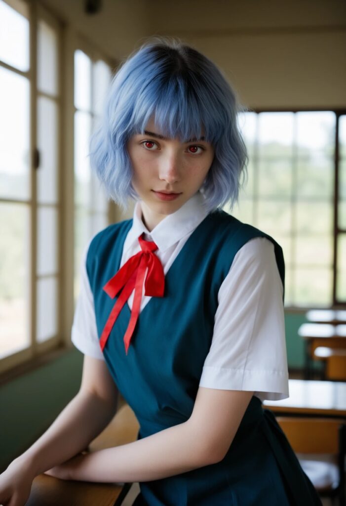 綾波レイの再現においては、アニメ的な記号を物理的なマテリアル(ラテックス、アルビノの特徴、フィルムの質感)へと翻訳するプロンプトエンジニアリングが成功の鍵となる。青い髪と赤い瞳という非現実的な要素を、フォトリアリズムの文脈で説得力を持って提示するためには、照明設計とカメラ設定(被写界深度、レンズミリ数)の指定が不可欠である。