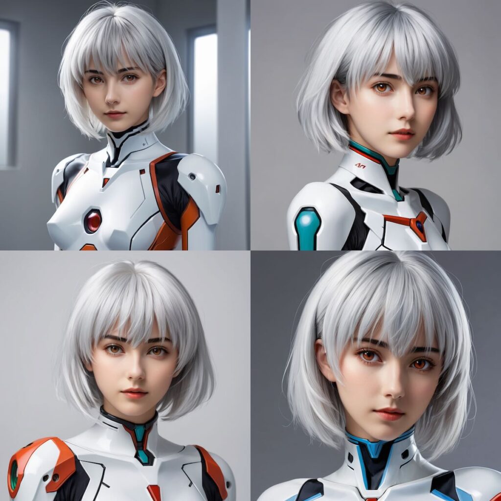 それでは、これまでの知識を総動員して、実際に作品を作ってみましょう。お題は『新世紀エヴァンゲリオン』の「綾波レイ」です。目標は、単なるアニメの模写ではなく、Nuclear v3の持ち味である「セミリアル」なスタイルを最大限に活かした、芸術的なポートレートです。
