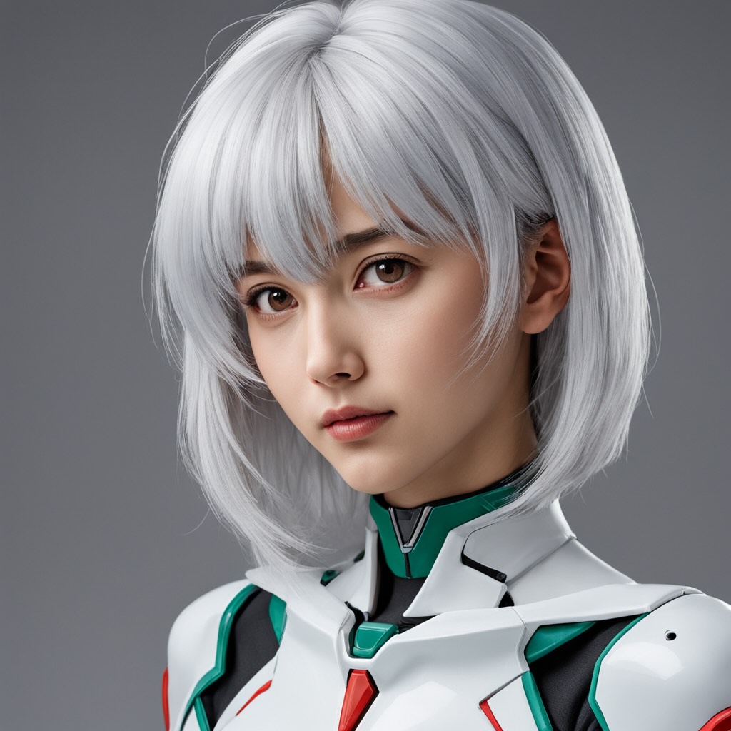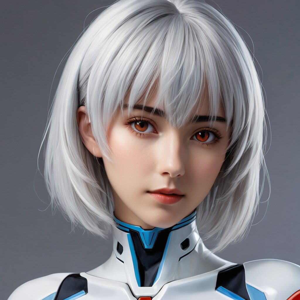 レイの象徴的な特徴(青い髪、赤い瞳、白い肌)はしっかり維持しつつ、リアルな質感、映画のような光と影、そしてどこか物憂げな感情が伝わってくるような、深みのある作品を目指します。