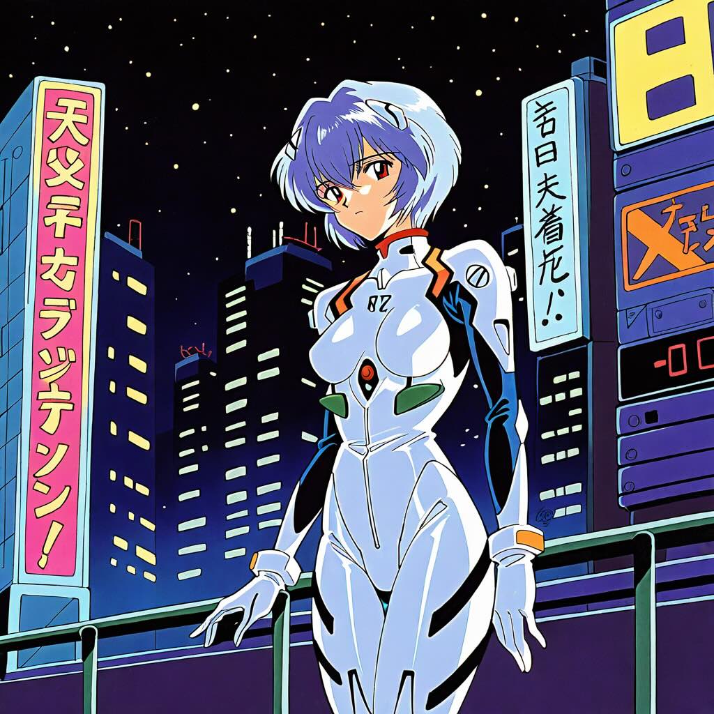 - コンセプト (1980年代): 綾波レイを、80年代のSF-OVA(オリジナル・ビデオ・アニメ)のヒロインとして再解釈する。当時の特徴である、より写実的で情報量の多いメカデザインと、少し大人びたキャラクターデザインを反映させる。舞台はレトロフューチャーな都市の夜景。
