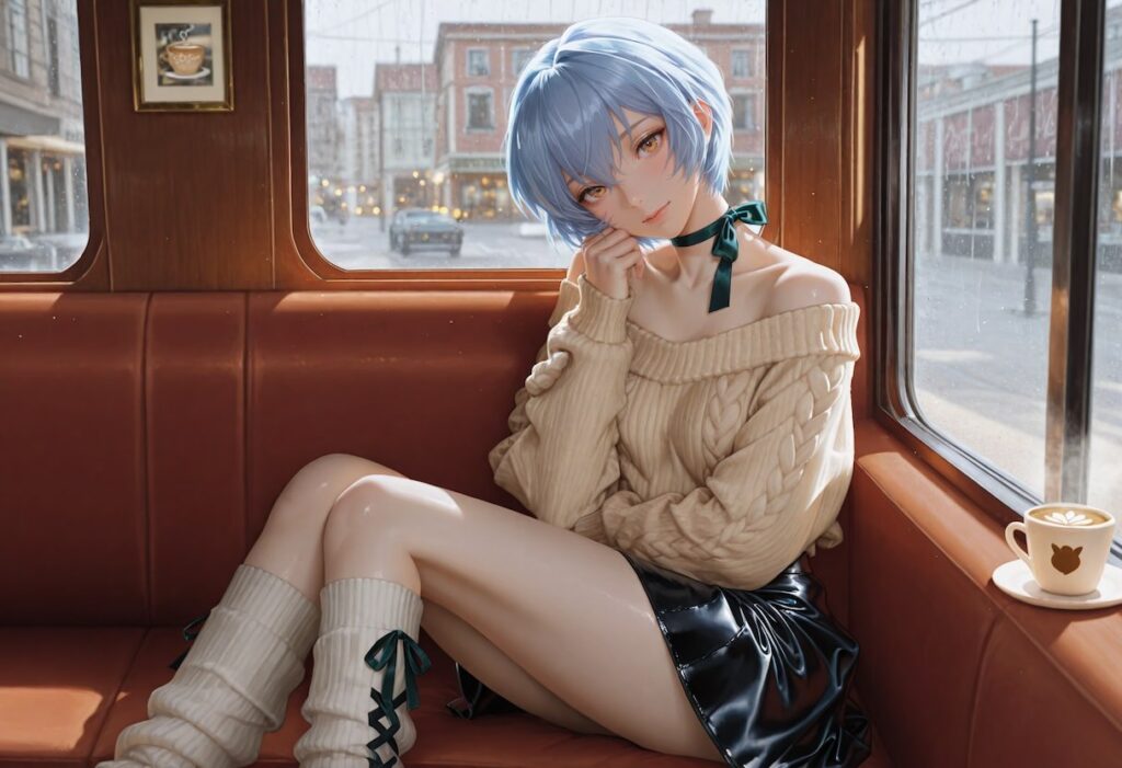 解説: photorealisticの重みを上げ、y2kやballetcoreといったZ世代トレンドワードを使用。あえて日常的なカフェのシーンにすることで、「推しが実在する」錯覚を与え、共感性の高い「いいね」を狙う。