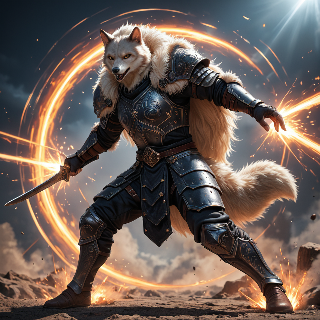 - ææ³: fur texture, intricate armor, dynamic pose, battle atmosphereã