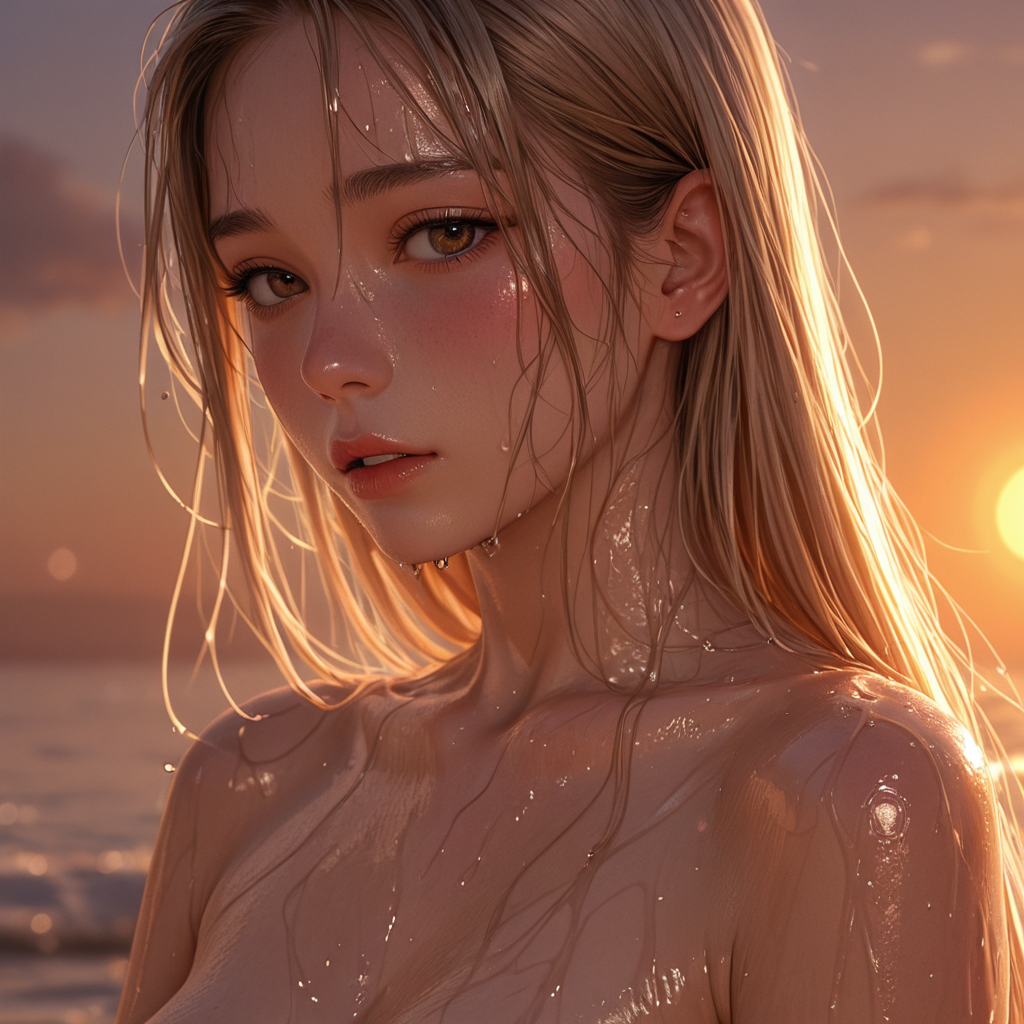 - ææ³: sweat, wet skin, backlighting, rim light, golden hourã