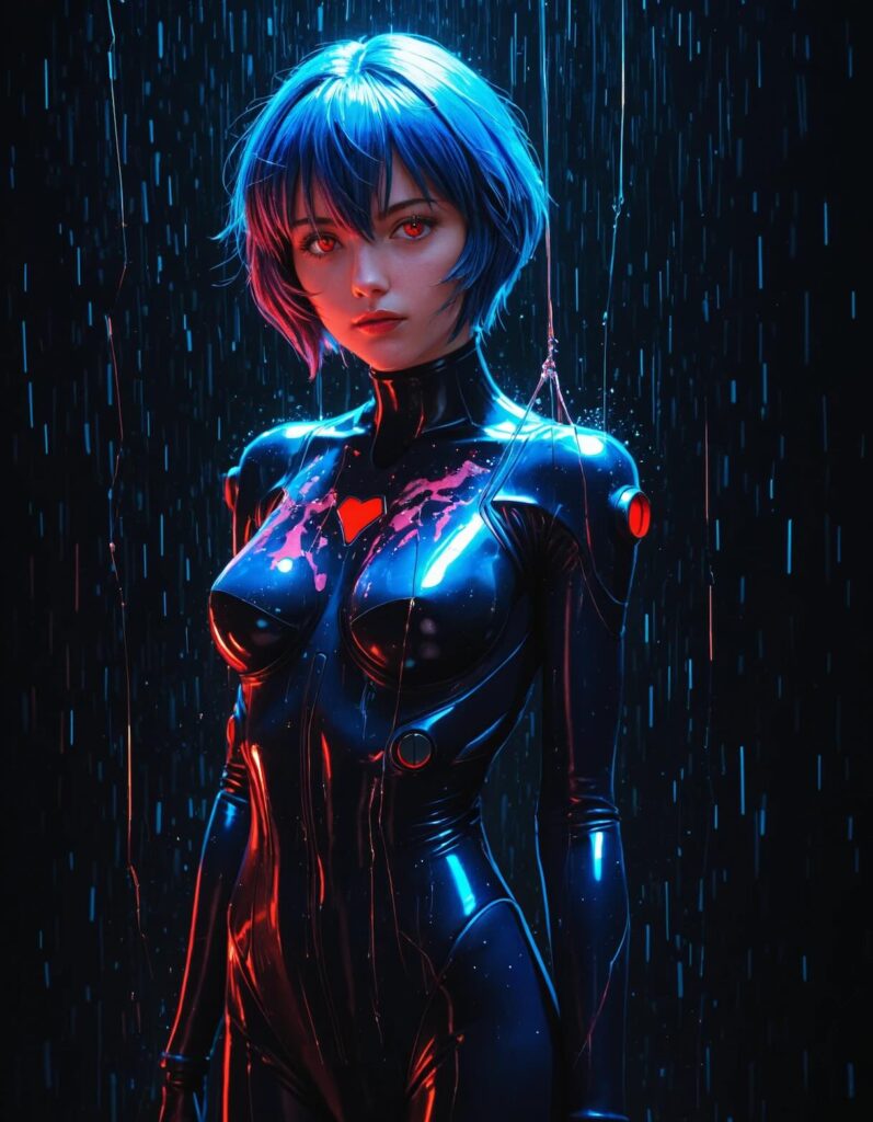 共通戦略: 綾波レイの特徴(ayanami rei, blue hair, red eyes, plugsuit)はモデル自体が学習済み知識として持っていますが、それを単に出力するだけでは「バズる」作品にはなりません。**「物語性のある照明」と「質感の強調」**を加えることで、モデルのポテンシャルを最大限に引き出します。