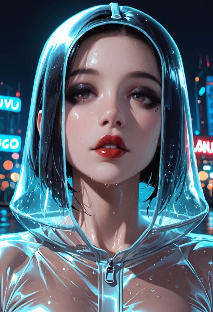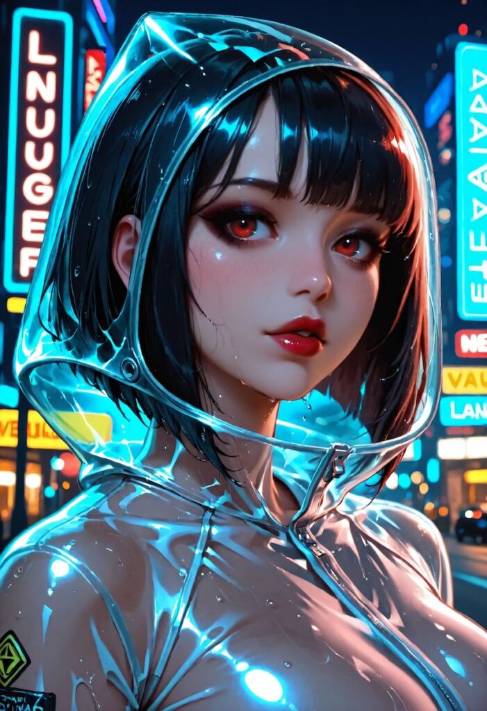 コンセプト: LoRAの最大の特徴である「透明素材の密着感」を、ファッション広告写真のようなクオリティで再現します。