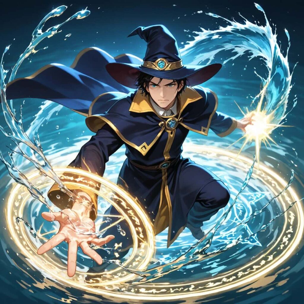 - 目的: 魔法使いが手から水の渦を放っているアクションシーン。
